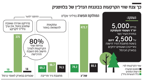 כת"ש דיווחה לרשות המסים על שווי קרקעות כולל של 79.2 מיליון שקל בעסקאות. היא ביקשה שיקבע שווי של 10 מיליון שקל לשטחים בפארק לאומי כרמל, שאותם לטענתה רכשה בעסקה פנימית בין החברות בשנת 2001 תמורת 16 מיליון שקל בלבד. סכום ששיקף שווי של 7,000 שקל לדונם. בנוסף דרשה שייקבע שווי של 69.2 מיליון שקל לשטחים של מחצבת הגיר חרייבה, שעליה ייבנו בפועל יחידות הדיור.